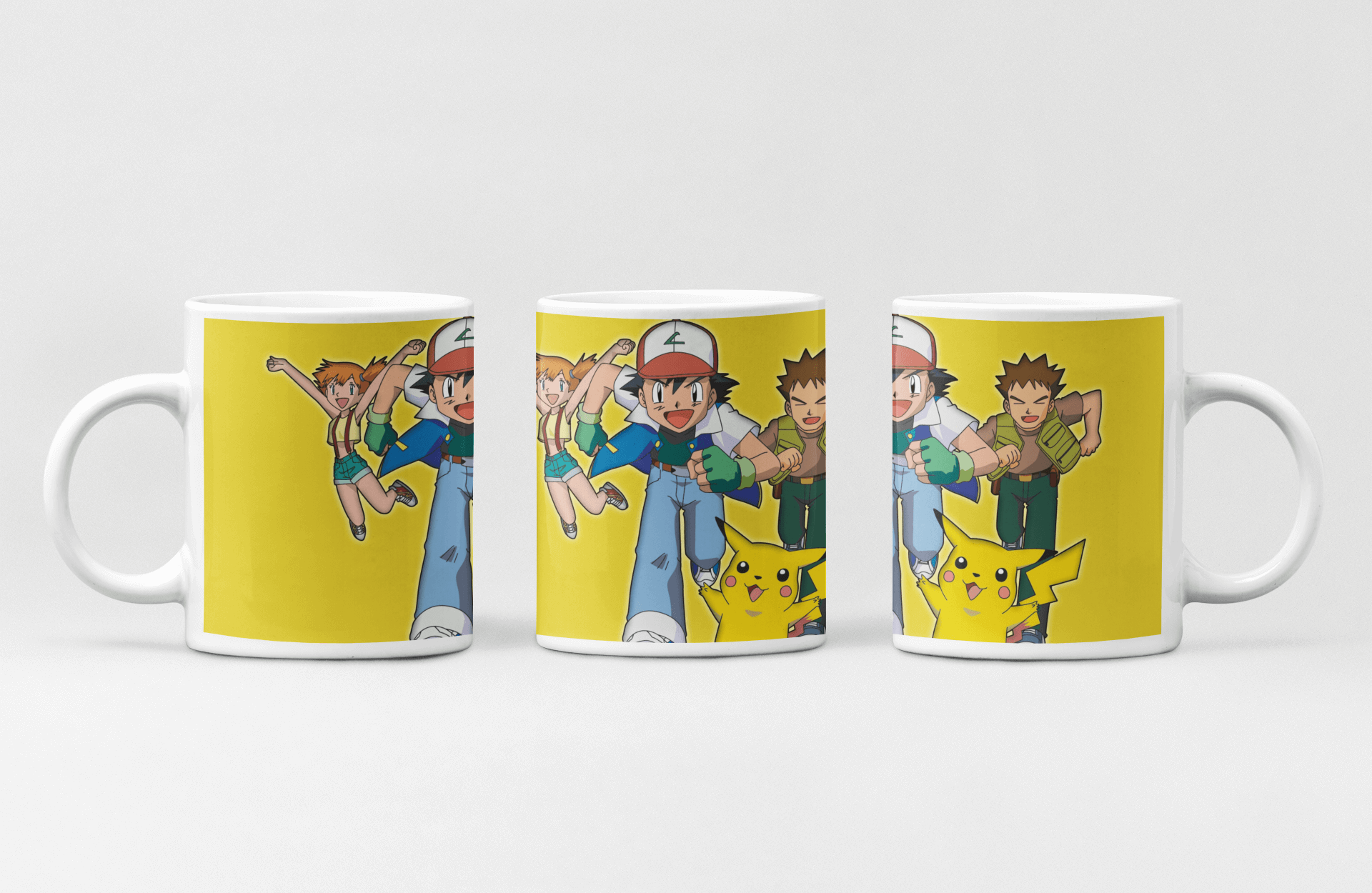 Caneca Ash,Misty,Brock e Pikachu